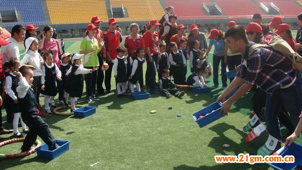 當(dāng)天早上8點(diǎn),體育中心賽場周圍就聚集了無數(shù)的家長和孩子,他們?nèi)缤右粓鍪?huì)一樣懷著激動(dòng)的心情等待化妝老師為孩子們精心打扮。9點(diǎn)準(zhǔn)時(shí)響起運(yùn)動(dòng)員進(jìn)行曲,教師和幼兒家長精神抖擻,口號(hào)響亮,邁著整齊的步伐,英姿颯爽地走入運(yùn)動(dòng)場。接著,市教育局領(lǐng)導(dǎo)致開幕詞后,運(yùn)動(dòng)會(huì)正式拉開了序幕。