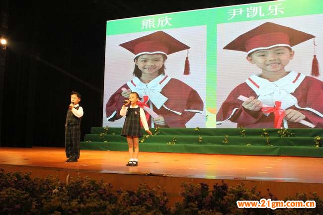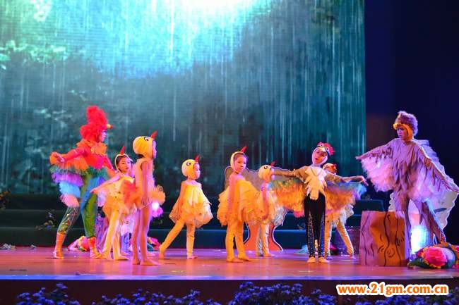如果說:畢業禮主打感動、感人牌,那么童話劇應該說是精彩完美,美輪美奐。當下最流行的《小蘋果》動感的舞蹈;《狐貍叫》個性的走秀;毛毛蟲在燈光的配合下蠕動身軀;小熊貓、小猴子、小馬、小蜜蜂氣派的動作留下一陣陣掌聲,家長竟然不相信是自己的孩子,質疑是不是從哪里借來的小演員。小朋友們“超水平”發揮,把“美麗綻放”演繹到極致,