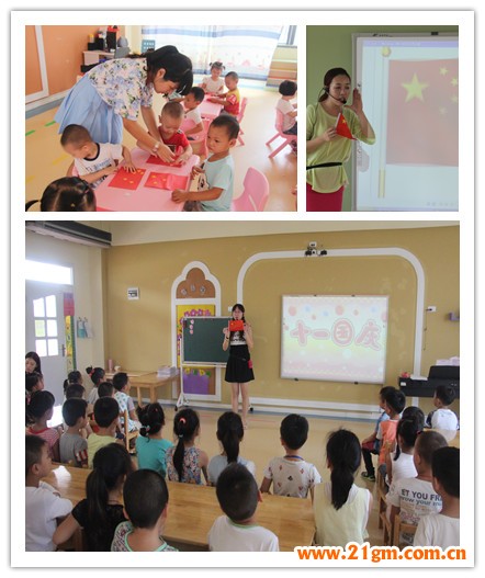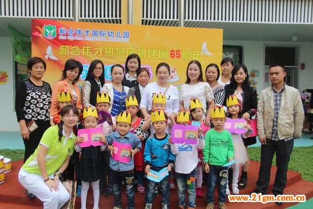 金秋時節,在即將迎來祖國媽媽65周歲的生日之際,偉才加盟幼兒園——湖北仙桃和合偉才國際幼兒園為了培養孩子們熱愛祖國的情感,感受傳統節日的氛圍,增進親子感情,于9月30日開展了“與祖國媽媽同慶生日”的系列活動:主題班會、升國旗、唱紅歌、知識問答、寶寶生日Party等等。