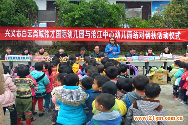 為促進教育均衡發展,增強城鄉幼兒園互動交流,讓山區孩子共享先進的教育資源,由興義市教育局與桔山教輔站牽線搭橋,具有高品質的幼教團隊及國際先進教育理念的白云尚城偉才國際幼兒園本著強烈社會責任感結對幫扶滄江鄉中心幼兒園。 香港偉才一貫秉承“品質教育,星級服務”的核心理念,致力于打造幼教金質品牌,讓更多的兒童接受高品質學前教育。今后白云尚城偉才國際幼兒園除在物質上幫扶滄江鄉中心幼兒園外,還將在辦學理念、教學方式、方法上進行交流和探討,定期派優秀教師前往該園進行教學經驗傳授、幫助完善學校管理制度等,促進兩園保育教育水平的提高,憑著企業應有的社會責任感,進一步促進區域內教育均衡、優質發展。