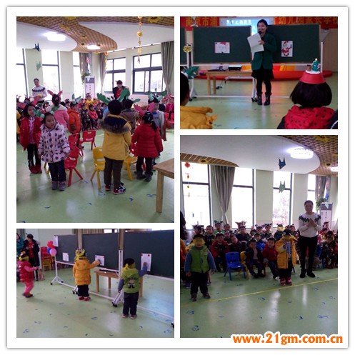 課堂上,老師給小朋友們講圣誕節(jié)的故事,教小朋友學(xué)唱圣誕歌曲,讓小朋友對(duì)這個(gè)西方節(jié)日有了基本認(rèn)識(shí),一聲聲“Merry Christmas!”在幼兒園各個(gè)角落快樂(lè)的回響著;午休時(shí),老師悄悄地把圣誕禮物按照約定放到小朋友的帽子里,當(dāng)小朋友醒來(lái)的時(shí)候發(fā)現(xiàn)帽子里的小禮物特別激動(dòng)和高興,紛紛拆看并和小朋友一起分享這份喜悅;下午,在老師們熱情的舞蹈中拉開了“Christmas Party”的序幕,“圣誕老人”再次來(lái)到小朋友的身邊,和小朋友們一起“貼鼻子”、“踩氣球”、“搶板凳”等游戲,歡聲笑語(yǔ)充滿整個(gè)大廳,輕松愉快的活動(dòng)帶給孩子和老師濃濃的節(jié)日氣氛。