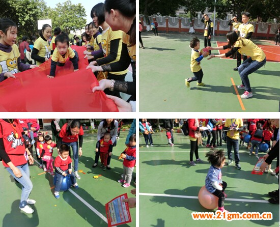 本次運動會分為入場式、親子表演、升國旗、親子體樂會、評比與頒獎等多個環節??炜葱“嘟M的孩子們,經過一個學期的學習,小朋友們走、跑、跳等運動技能都有了較大的提升,團體賽項目溜溜布、抬花轎以及親子個人賽項目夾球跳、跳羊角球等,充分地展示和進一步提升了小朋友們的運動能力,也讓家長們樂在其中。