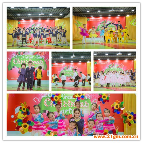 一切準備就緒,孩子們充滿童趣和美好圣誕意境的節目正在四樓多功能廳快樂上演:KB1班的《我愛偉才,我愛媽媽》,活潑可愛;KC2班的時裝表演《霓歌倩影》,舞蹈《BANG BANG BANG》,帥氣襲人;KC1班的奧爾夫音樂演奏《雪花飛舞》、《鈴兒響叮當》,單純真誠;KA1 班英語童話劇《小貓釣魚》,讓人忍俊不禁;還有園舞蹈隊《金色童年》,最后在《Merry Christmas》的歡樂歌曲中,圣誕表演圓滿謝幕!