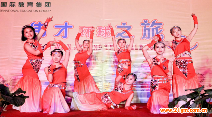 文藝演出在舞蹈班印度舞《紅裙飛揚》中拉開帷幕,孩子們歡樂的跳著、笑著。