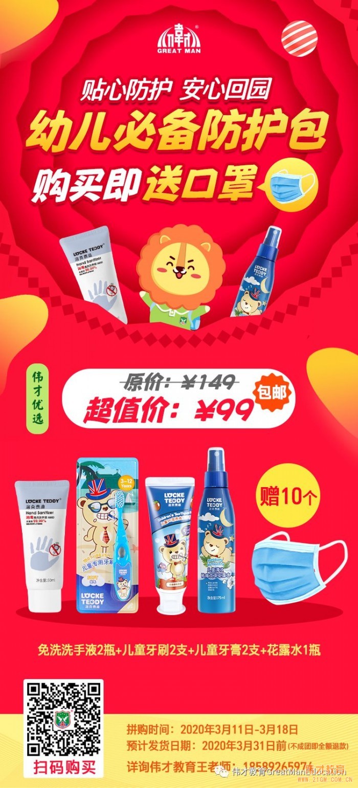 幼兒園防疫首選—清潔消毒防護套餐,超值贈送口罩10個!