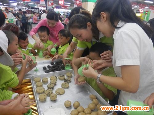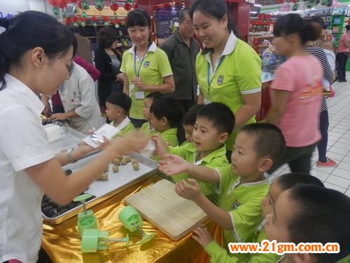 2012年9月29日,中大班的幼兒手拉手來到超市,體驗中秋節的熱鬧氣氛。以往的中秋節,都是各自從家里帶月餅到園里,分享品嘗,今年的中秋節,我園組織小朋友親自動手制作月餅,在與同伴相互介紹與分享中,進一步增進同伴間的關愛情感,體驗到人與人交往的快樂。不僅讓孩子們了解了中國傳統節日的許多習俗,更讓孩子學會了分享、體驗了活動帶來的樂趣。通過本次活動,增進了老師、幼兒之間的情感,同時也是一堂別開生面的知識課。讓孩子在快樂中學習,在幸福中成長。
