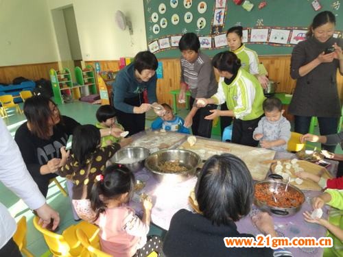二是“家園齊動手”——張燈結彩迎新年。紅紅的對聯、紅紅的燈籠、紅紅的福字、紅紅的窗花、紅紅的拉花把各班教室裝扮得格外喜慶,繽紛斑斕的墻面布置突出了孩子、家長和老師們的新年祝愿,一張張全家福、一個個新年賀卡、一幅幅美術作品展現出孩子們成長的幸福和快樂,濃厚的新年氛圍各顯特色。和面、包餃子、炸耦合、擰麻花、蒸棗饃等等,在活動的開展中,極大的顯現了家長們高超的烹飪手藝。孩子們、家長們、老師們齊動手,共勞動,成果齊分享。場面其樂融融,溫暖而幸福……