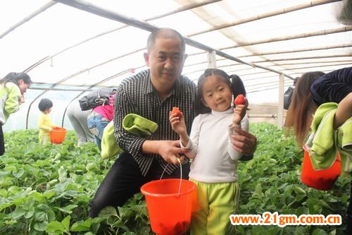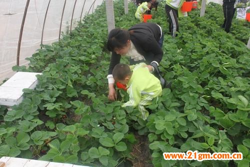 家長和小朋友們一早就來到幼兒園集合,準時乘車出發,一路上,充滿著大家的歡聲笑語。汽車駛入廣饒縣顏徐村一草莓采摘園后,一排排用白色塑料薄膜罩著的草莓大鵬展現在了幼兒的眼前。懷著激動與期盼的心情,小朋友們迫不及待的鉆進了草莓大鵬。一個個草莓紅紅的,散發出濃濃的香味,羞答答的躲在綠葉后面,讓人垂涎欲滴。