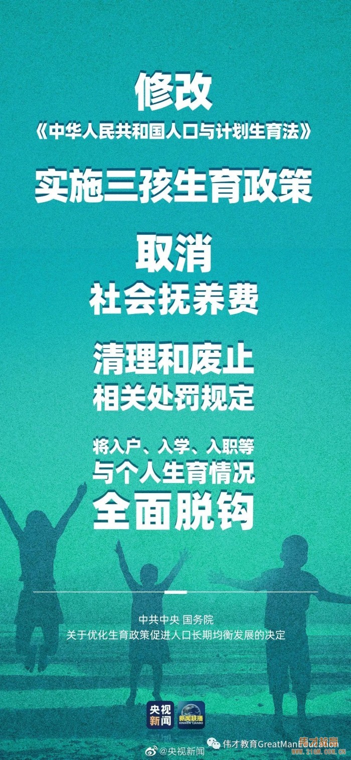 積極應對人口老齡化,中共中央政治局5月31日召開會議,會議指出,進一步優化生育政策,實施一對夫妻可以生育三個子女政策及配套支持措施,有利于改善我國人口結構、落實積極應對人口老齡化國家戰略、保持我國人力資源稟賦優勢。