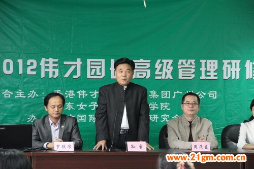 2012年12月15日-17日,由香港偉才教育集團廣州公司和廣東女子職業技術學院聯合主辦的“2012偉才園長高級管理研修班暨2011年度評優頒獎活動”在廣東女子職業技術學院舉辦,香港偉才教育集團廣州公司董事長孫圣、董事副總經理羅駭浪、廣州偉才科教技術開發有限公司技術總監趙蓮勤、廣東女子職業技術學院副院長周茂東、文化藝術系主任區靖珺、院辦主任鄒勝、青少年工作與管理專業主任馮玉華、學前教育專業副教授嚴鳳英等嘉賓領導出席了活動開幕式。