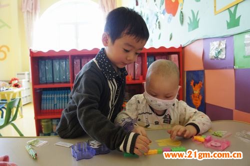 2013年3月,因患白血病還在接受治療中的小伊儀在父母的陪伴下,迫不及待的回到了她所在的大慶藍冠偉才幼兒園,跟闊別已久的小伙伴嬉戲玩耍。