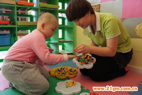 好朋友認真教小伊儀玩拼圖