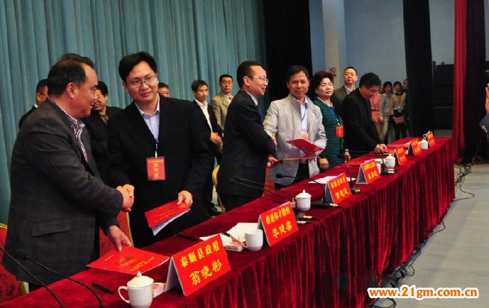 泰順縣副縣長翁曉彬(左一)與偉才公司李健棠總監(左二)簽訂幼兒園項目投資協議