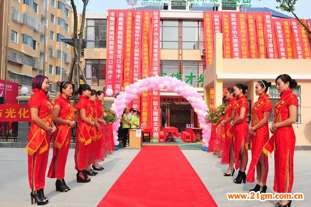 2014年9月5日, 湖北省襄陽市首家高端幼兒園所——老河口偉才幼兒園隆重開園。該加盟幼兒園位于老河口市北京路柳林花園小區內,占地面積1300多平方米,設置6個班,室外設有沙池、戲水池、生態種植園等大型的戶外活動和體驗設施,是全市首屈一指的園林式幼兒園。