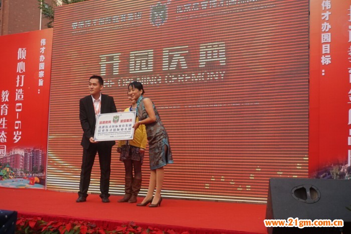 北京市房山區教委副處級調研員趙瑞蘭、房山區長陽鎮鎮長助理、教育助理耿常月、廣州偉才品牌文化部總監吳興強、北京市特級教師盧珊珊等領導嘉賓出席了本次開園慶典活動。在北京電視臺主持人的主持下,現場嘉賓共同完成開園剪彩儀式,對啟睿偉才國際幼兒園寄予了深切厚望與美好祝愿。偉才吳總監為北京啟睿偉才國際幼兒園進行正式授牌。