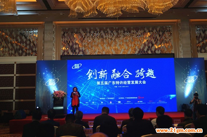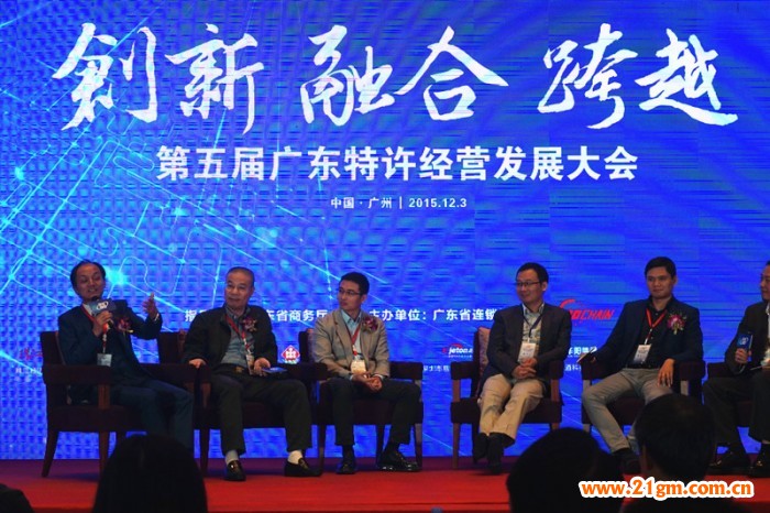 “品牌廣東 閃耀全國”第五屆廣東特許經(jīng)營發(fā)展大會暨特許廣東·2015年度品牌盛典于2015年12月3日在廣州增城保利假日皇冠酒店隆重舉行。本屆會議以“創(chuàng)新、融合、跨越”為主題,聚焦“互聯(lián)網(wǎng)+”的時代大背景下的變革與未來,通過創(chuàng)新思維、整合資源、融合發(fā)展,實(shí)現(xiàn)企業(yè)轉(zhuǎn)型突破和跨越式增長,圍繞全渠道、供應(yīng)鏈優(yōu)化、資本運(yùn)作、零售創(chuàng)新等議題開展深入交流。