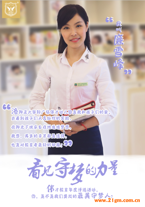為迎接2016年教師節(jié)的到來,同時提升園所實力,強大師資力量,打造更加規(guī)范、更具競爭力、更具影響力的園所,偉才教育總部特舉辦“看見守夢的力量”2016年度偉才教育體系園所師資評選活動,具體如下,請偉才體系園所各園長、老師積極參與,成為最美守夢人!