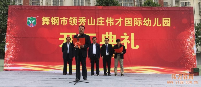 為給河南舞鋼的孩子們提供更好的學前教育,為當地增添更加優質的教育資源,2018年10月22日,全國知名的幼兒園加盟品牌偉才教育走進舞鋼,走進領秀山莊,舉行盛大的開工典禮儀式,宣告舞鋼市領秀山莊偉才幼兒園即將啟航!