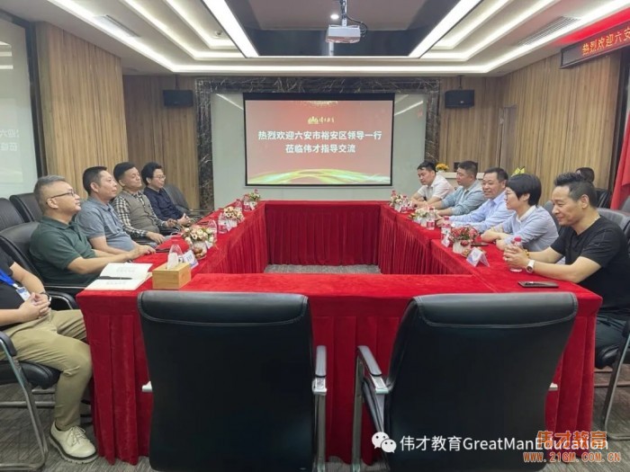 2021年10月27日上午,在廣州市番禺區天安節能科技園,偉才教育迎來了來自安徽六安市裕安區的客人,裕安區政法委副書記黃衛寶、裕安區獅子崗鄉鄉長趙瑩一行前來考察。偉才教育董事長羅駭浪全程接待。