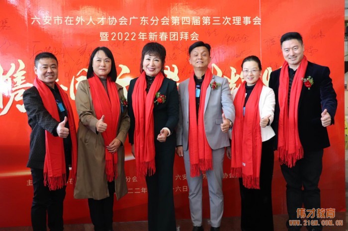 虎虎生威開新春,同心同德鑄輝煌。2022年2月26日,安徽省六安市在外人才協會廣東分會第四屆第三次理事會暨2022年新春團拜會在廣東省佛山市召開。裕安區副區長巴士衛、裕安區政協副主席楊孝清、原六安市駐廣辦主任張俊春、佛山市人大原秘書長周成志、廣州市教育局原局長華同旭、原成都軍區空軍副政委張逢堂、人才協會第一屆會長陳長兵等家鄉政府和在粵六安籍領導蒞臨現場,與鄉友精英們共敘鄉情,共謀發展。六安市在外人才協會廣東分會輪值會長、偉才集團董事長羅駭浪出席會議。 在理事大會上,六安市在外人才協會廣東分會會長、廣州越群集團董事長許衛女士發表致辭,向現場來賓致以新春的祝福,并展望協會未來,呼吁六安籍在外人才攜手同行,共創輝煌。協會秘書長、中山大學公共衛生學院教授黃奕祥對協會過去的工作做了總結,高度肯定六安人的開創精神和擔當情懷。 會議審議并表決通過了《第四屆二次理事會工作報告》,增補顧問、輪值會長、常務副會長、副會長、理事、秘書處候選人名單;并共同推舉佛山分會會長李繼兵先生擔任新的第一任執行會長。李繼兵是廣東易運物流基地有限公司董事長,30年來憑著敢闖敢拼的勇氣和不屈不撓的意志,創立了物流王國,相信在他的帶領下協會將走上一個新臺階。 悠悠赤子心,濃濃桑梓情。隨后在家鄉領導、嘉賓和眾鄉賢的見證下,舉行了“六安市在外人才協會廣東分會2022年主題活動”啟動儀式。協會輪值會長、偉才集團董事長羅駭浪宣講了《2022皋粵同行,公益助學》主題活動,呼吁鄉友們群策群力資助家鄉困難的學子。協會今后還將舉行不同內容、不同主題的慈善活動,偉才教育發起的針對六安市舒城縣孤殘兒童的“助力雛鷹 牽手成長”幫扶行動,也將為家鄉的孩子送去福音。 各大鄉友企業紛紛與協會簽約,以一顆至誠之心,燃起慈善之火,傳遞正能量。