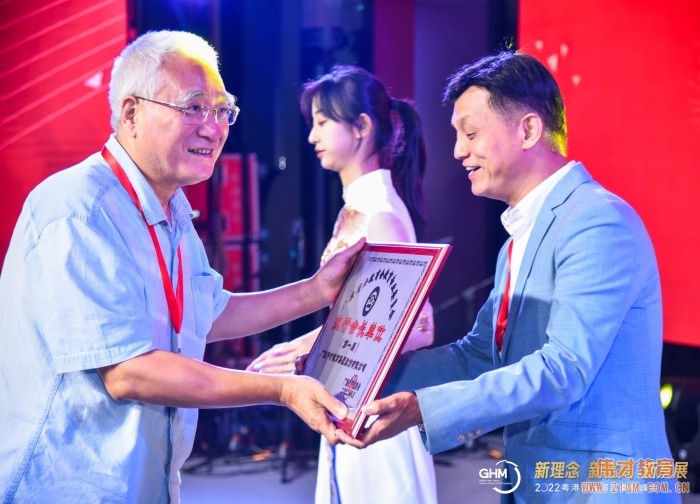 Hua Tongxu, former Director of the Guangzhou Municipal Education Bureau, presents the "Executive President Unit of the Education Committee" plaque to Great Man Education Group.
