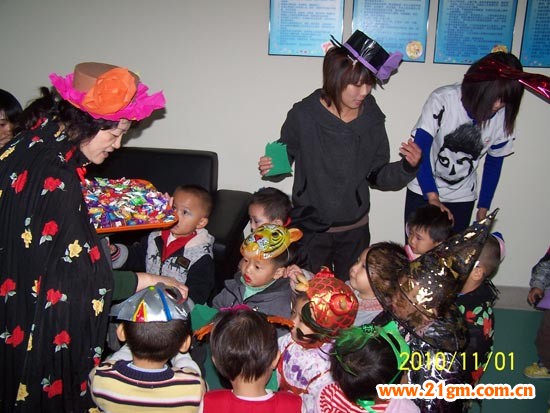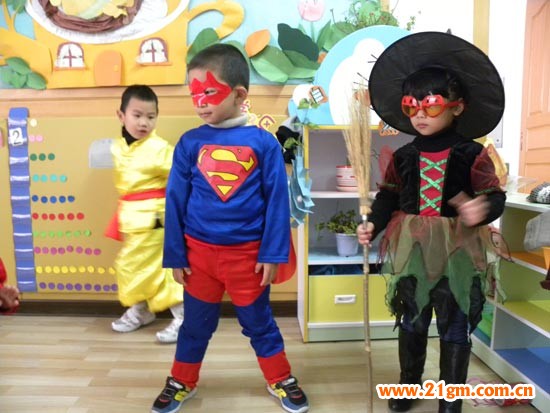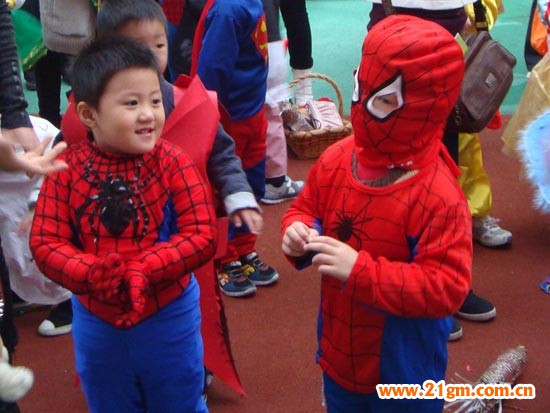 萬圣節(jié),俗稱西方的“鬼節(jié)”。10月31日晚五點半,泰州偉才幼兒園中大班的孩子們奇裝異服出現(xiàn)在校園里,在這里瘋狂慶祝萬圣節(jié)。孩子們,裝扮成灰太狼、超人、蜘蛛俠等各式各樣的卡通形象,唱起了“trick or treat,give me candy to eat.的歌曲。孩子們脫下頭上的帽子索要糖果,樂在其中!