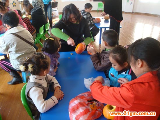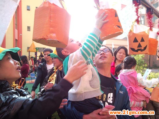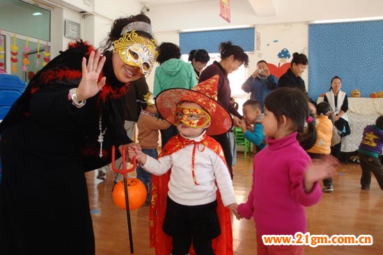 萬圣節(jié)是西方的“鬼節(jié)”,10月31日是萬圣節(jié)的前一夜,按照西方的習俗這個夜晚人們會提著南瓜燈帶上面具到戶外舉行不同形式的活動,孩子們也會挨家挨戶去要糖吃。我園為了豐富孩子們的知識、開闊孩子們的視野,在10月29日上午舉行了“中國特色”的萬圣節(jié)主題活動。活動中我們?nèi)w教師、家長、孩子共同參與度過了一個歡樂的萬圣節(jié)日。