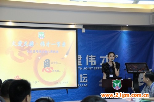 通過(guò)此次論壇,總部欣喜地看到,各加盟園、合作園在發(fā)展中,已經(jīng)逐步將偉才“品質(zhì)教育、星級(jí)服務(wù)”的宗旨和經(jīng)營(yíng)理念融入自己的管理與經(jīng)營(yíng)之中,并且開(kāi)始不斷積累管理經(jīng)驗(yàn),偉才人憑著“心系偉才、共建偉才”的堅(jiān)定信念和勇往直前的勇氣,共同打造偉才國(guó)際金質(zhì)品牌!
